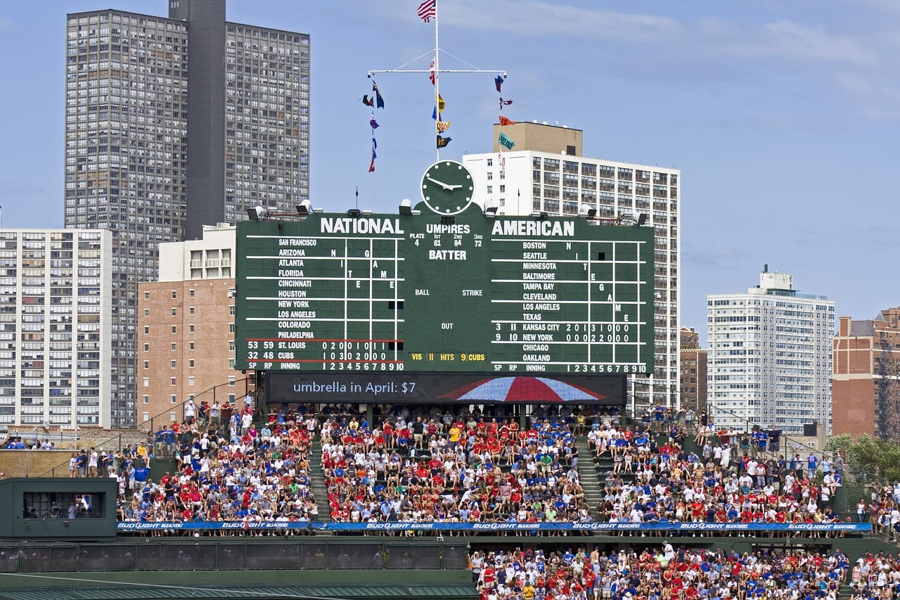 Das Wrigley Field verfügt noch über eine manuelle Anzeigetafel. Es handelt sich um die letzte manuell betriebene Anzeigetafel in den USA. Hinter oder in der Anzeigetafel stehen vier Männer. Sie sorgen dafür, dass der Punktestand immer an den richtigen Stellen der Stahltafeln erscheint.
