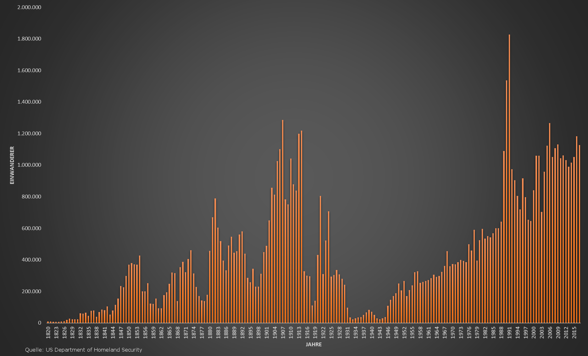 Zahlreiche Einwanderungswellen aus Deutschland, Irland, Italien und den osteuropäischen Staaten fanden in der Zeit zwischen 1880 und 1900 statt. 1921 und 1924 wurde die Einwanderung in die USA erstmals einer Quote unterworfen. Die Regierung versprach sich damit, die Einwanderung aus den osteuropäischen Ländern zu begrenzen und gleichzeitig diese Entwicklung aus den westeuropäischen Ländern zu begünstigen. Der „Emergency Quota Act and Immigration Act“ begrenzte die Anzahl der neuen Einwohner auf jeweils zwei Prozent der Bevölkerung des Jahres 1890.