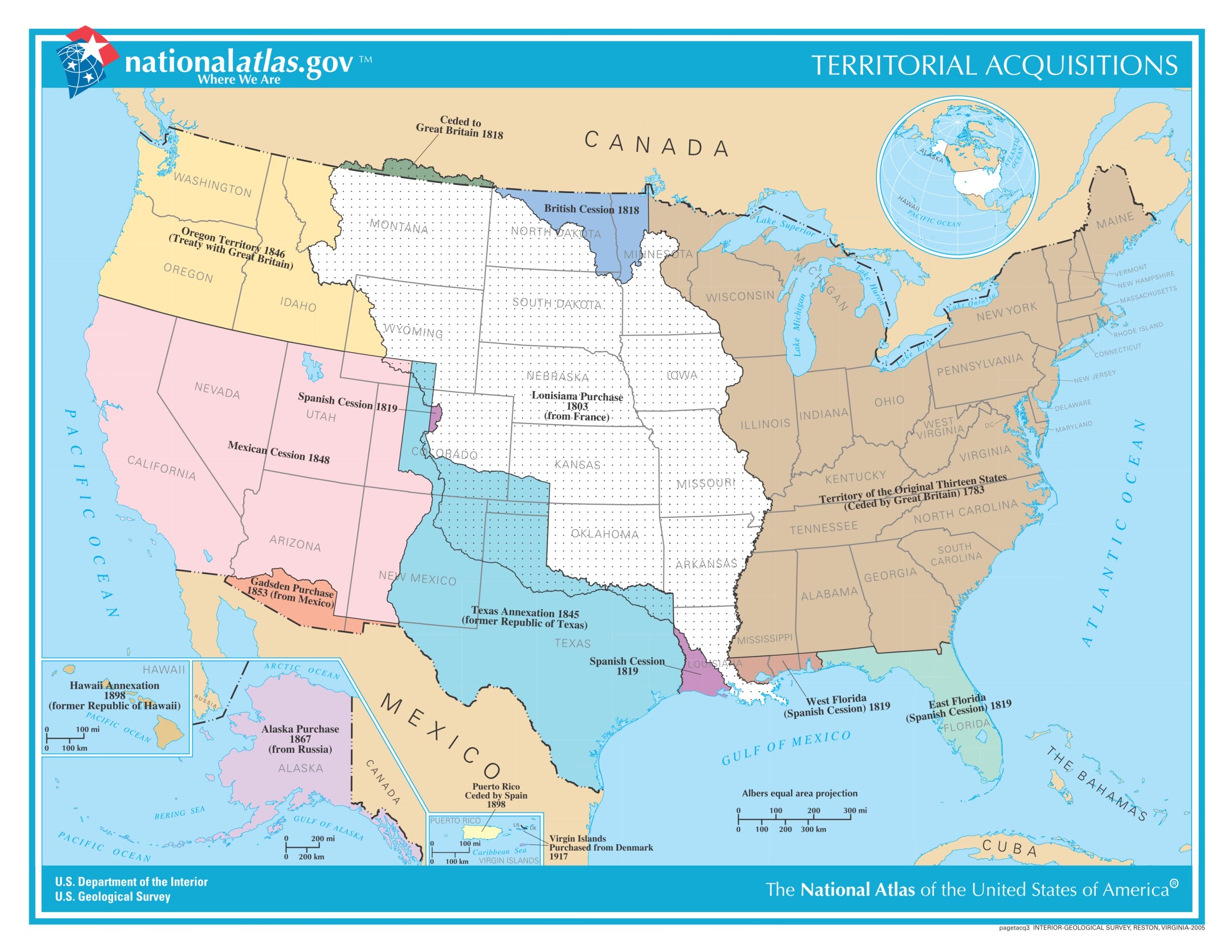 USA Karte mit territorialen Zugewinnen