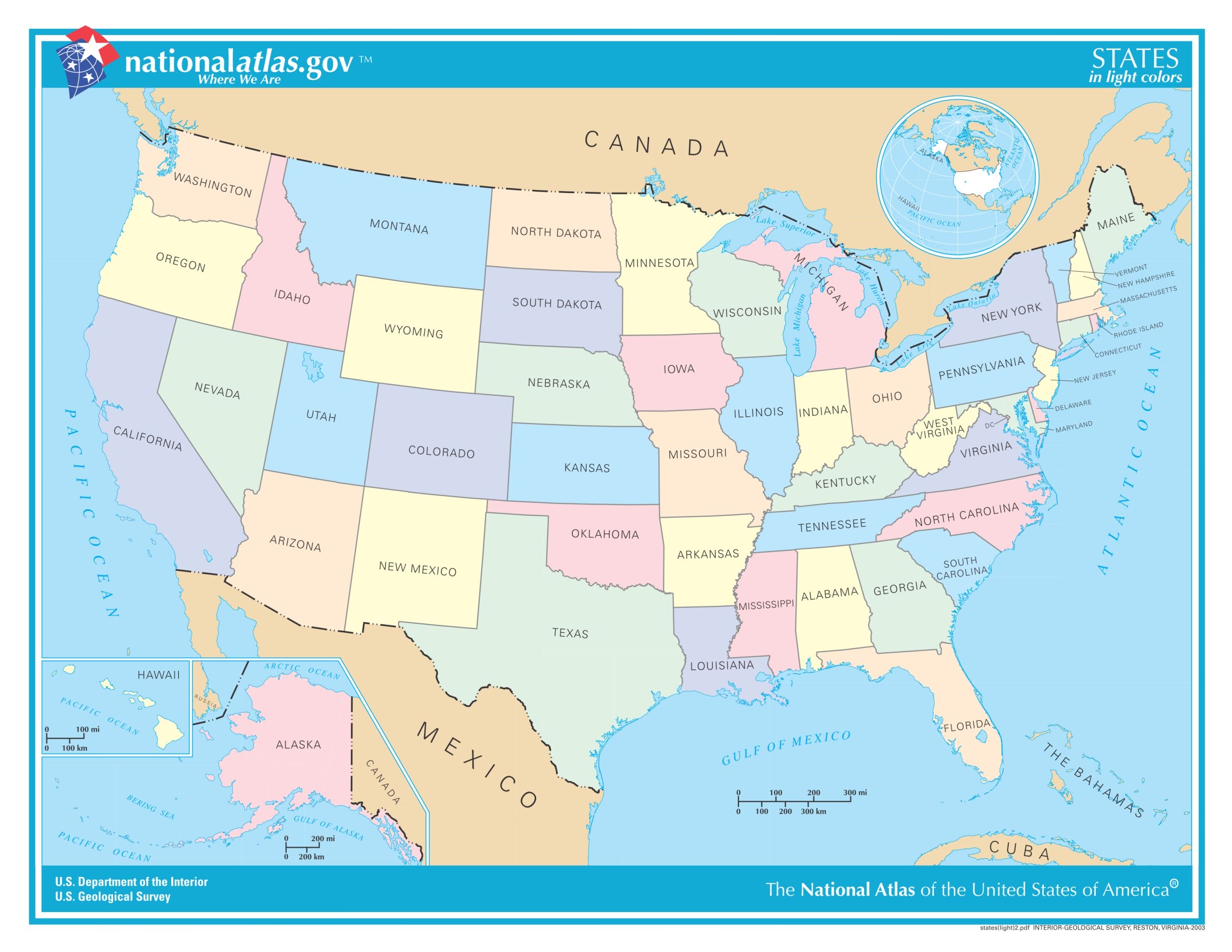 USA Karte der 50 Bundesstaaten