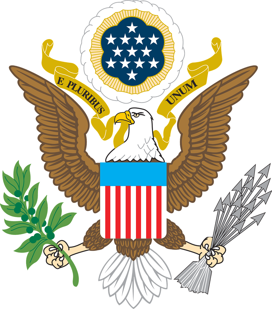 Wahlspruch: E Pluribus Unum (lateinisch für: aus vielen Eins), In God We Trust (Wir vertrauen auf Gott) – dieser Spruch ist auch auf den Münzen und Papierscheinen.